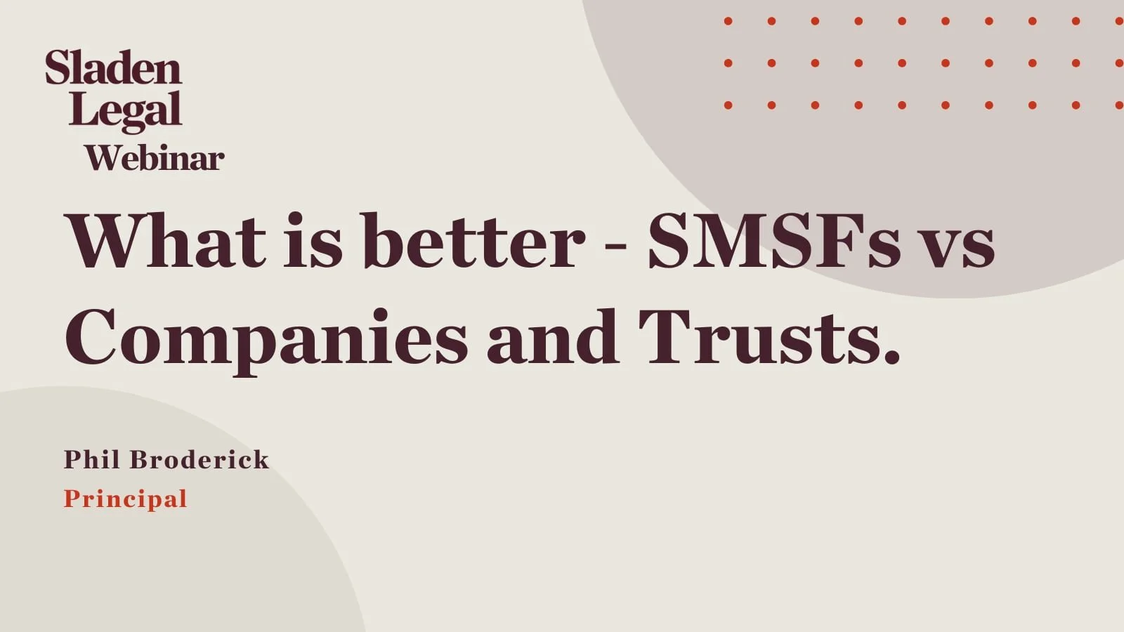 Complete the form below to view the recording of this event. If you encounter any issues, feel free to reach out to us at smart@sladen.com.au.