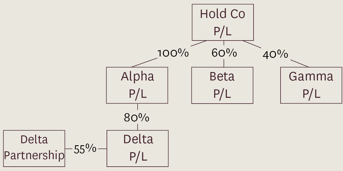 For example, if we refer to the example above and add an additional fact, being that Delta P/L has a 55% interest in the capital of Delta Partnership, the Hold Co Group (excluding Gamma P/L) will now also include the Delta Partnership as a result of a controlling interest held.