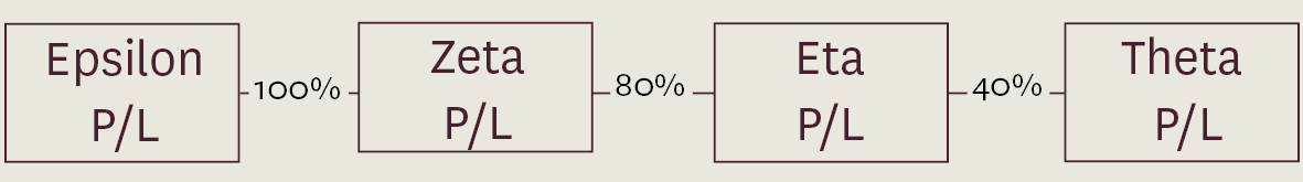 Epsilon’s indirect interest in Eta exceeds 50%, however its interest in Theta does not and therefore it does not have a controlling interest in Theta P/L when traced.