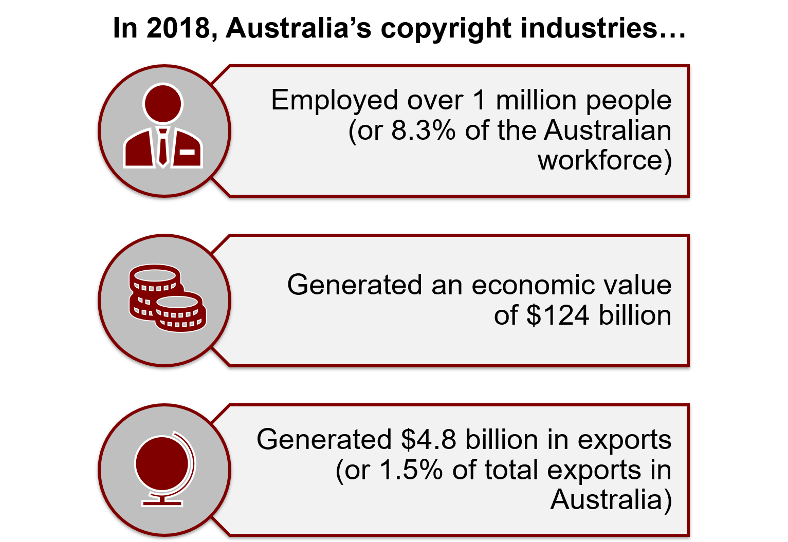 [2] PwC (2020) ‘The economic contribution of Australia’s copyright industries’ pg. 13