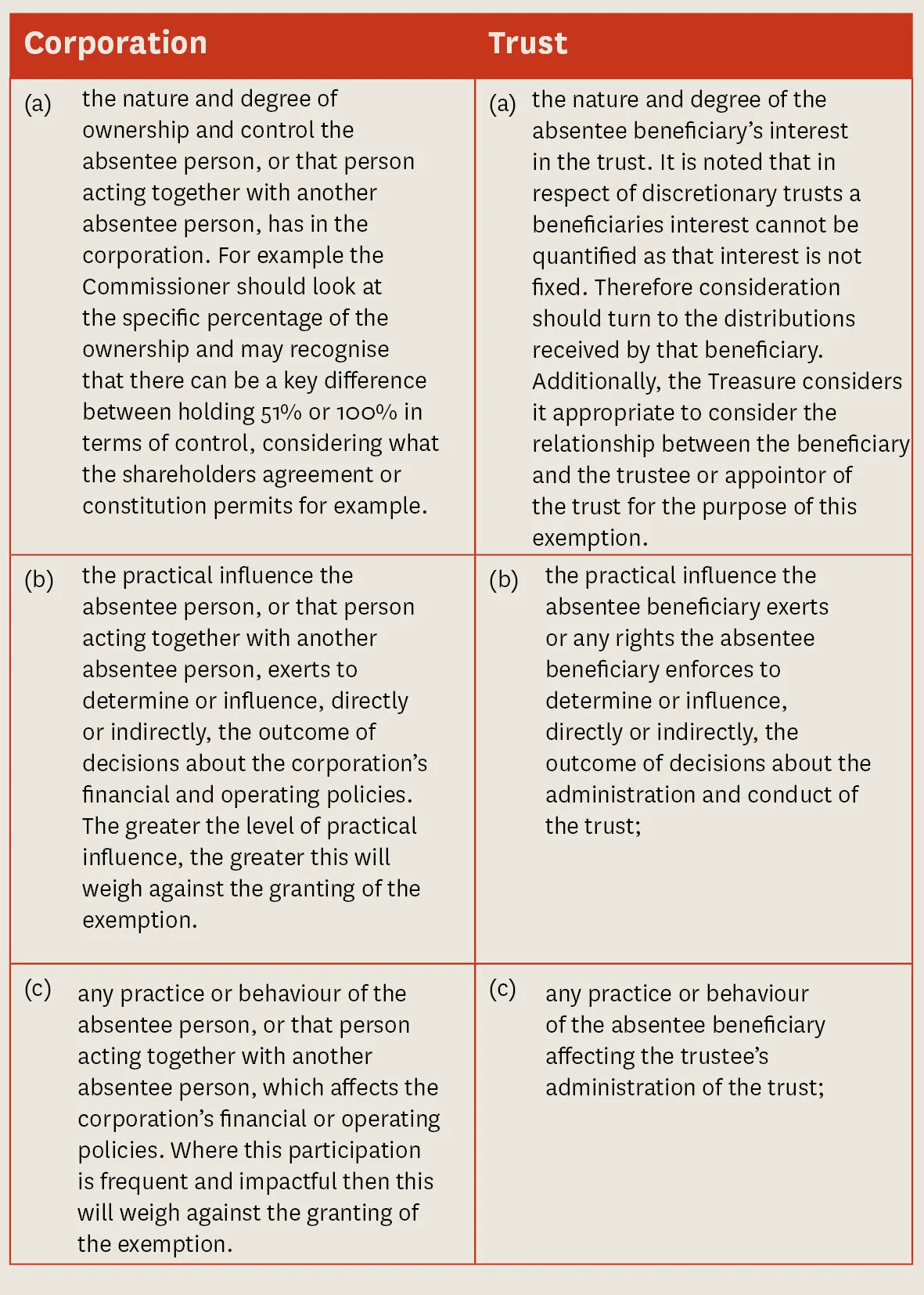 There are then different absentee trust rules for different types of trusts. That is, absentee trust is one in which: