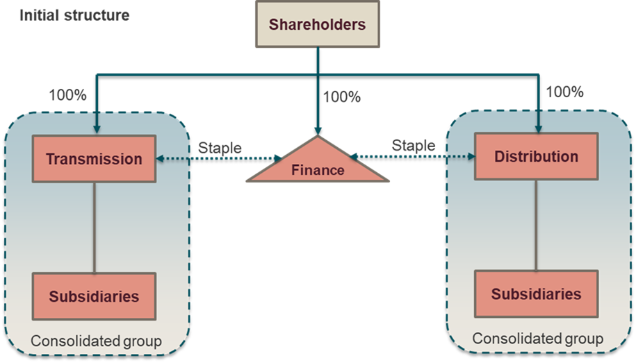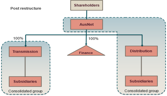 The AusNet group was a triple-stapled structure, made up of two companies, AusNet Services (Transmission) Limited (Transmission) and AusNet Services (Distribution) Limited (Distribution), both with their own consolidated groups, and a trust, AusNet Services Finance Trust (Finance).