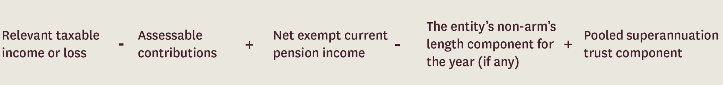 Excluding the Pooled superannuation trust component which is not relevant for SMSFs, the above terms have the following meanings: